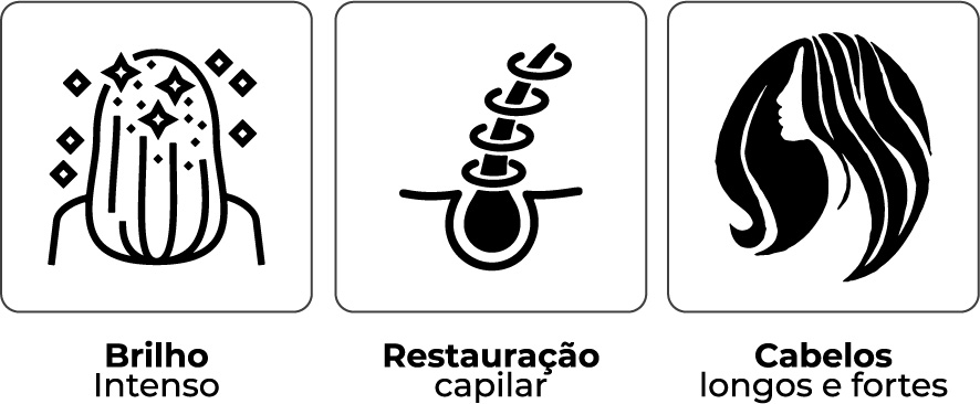 Hidratação imediata, regeneração capilar, proteção contra quebra do fio, selamento da cutícula, prevenção ao ressecamento, proteção antioxidante, brilho e maciez. Indicado para todos tipos de cabelo.